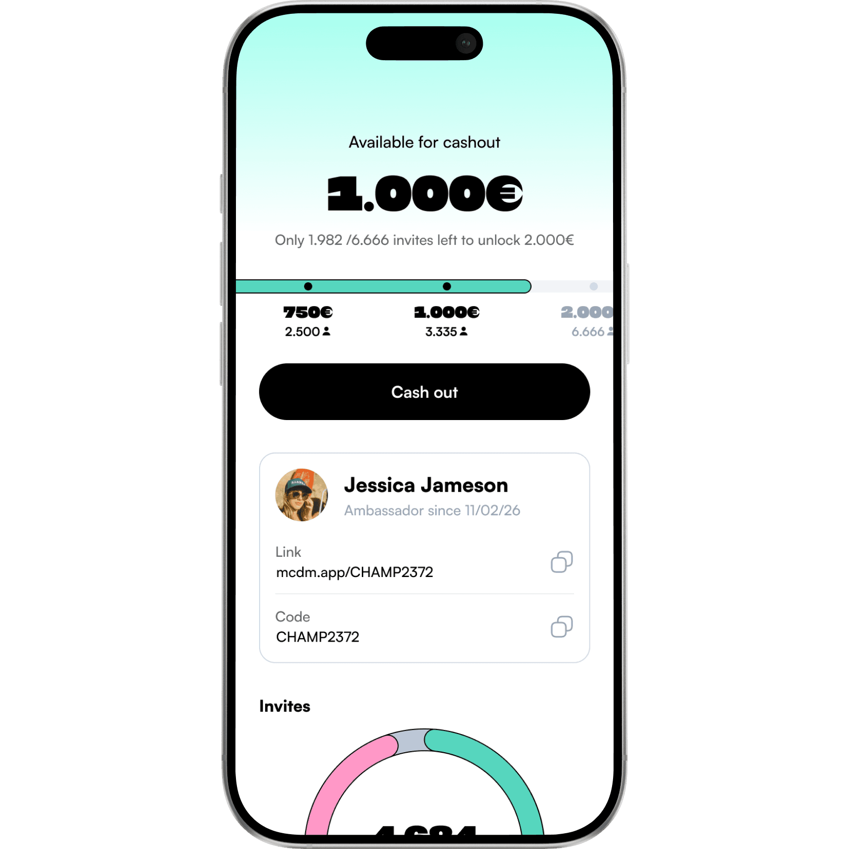 Earnings depend on the number of invites and the activity of the users you invite.